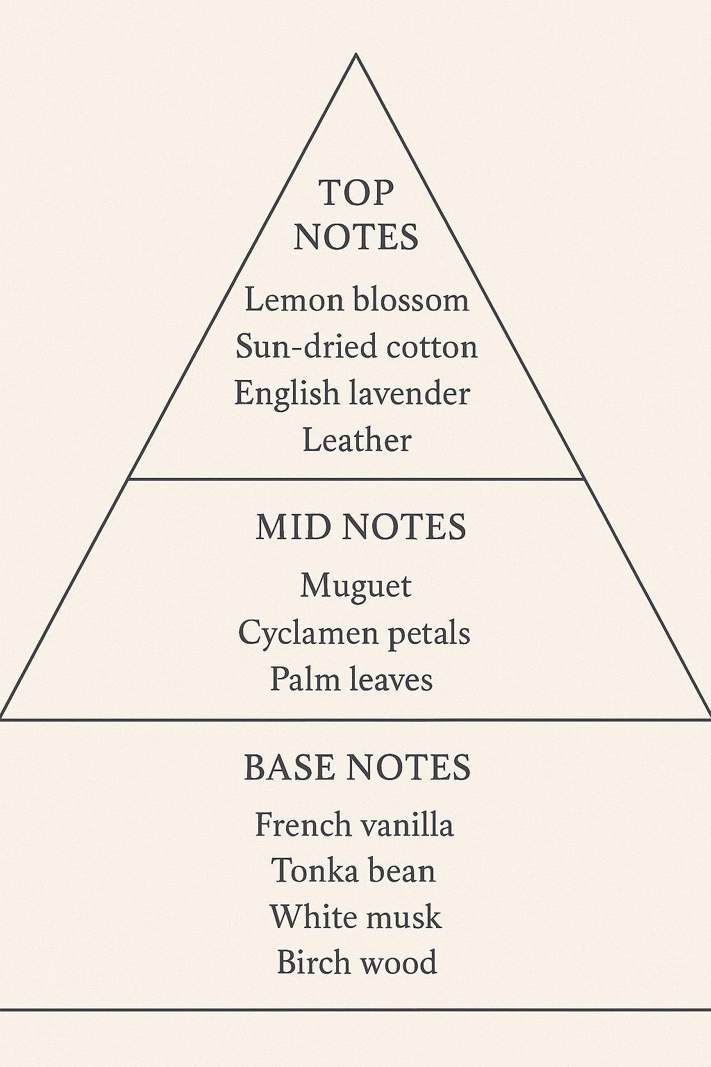 ✔ Base Notes: French vanilla, Tonka bean, white musk, birch wood